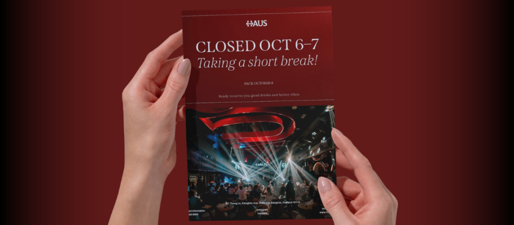 Haus Bangkok หยุดให้บริการ 6-7 ต.ค. 2568
